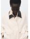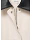Tejido de algodón estilo tejano vaquero. Diseño combinado. Diseño recto. Cuello camisero efecto piel. Manga larga. Dos bolsillos de parche, solapa y botón en la parte delantera. Cierre oculto de cremallera y botones