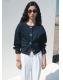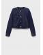 Tejido de algodón estilo tejano vaquero. Diseño recto. Diseño crop. Cuello redondo. Manga larga. Dos bolsillos de parche frontales. Costuras en contraste. Cierre delantero con botones. Forro interior