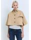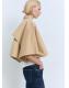 Estilo capa. Cuello camisero. Manga tres cuartos. Cierre delantero con botones