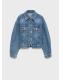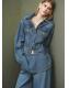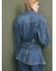 Tejido de algodón estilo tejano vaquero. Diseño entallado. Cuello camisero. Manga larga con puños abotonados. Dos bolsillos de parche con botón en el pecho. Costuras decorativas. Tiras laterales ajustables con botón. Cierre delantero con botones. Total look
