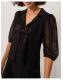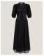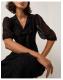 Effortless elegance. Crafted from sheer fabric with velvet polka dots, this midi dress exudes femininity. Finished with a collared neckline, short puff sleeves, and a statement bow to the front. Just add heels. Black