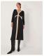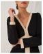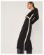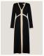 Sophisticated style. Featuring striking contrast panels, this midi dress boasts a V-neckline and long sleeves. Pairs beautifully with knee-length boots. Black