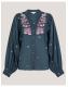 Bohemia in full bloom. Spun in breathable cotton, this blouse is a versatile pick you can wear in the office and out to brunch. Featuring a relaxed v-front neckline and button fastenings, it's decorated with tapestry-style florals for an elevated, feminine finish. Blue