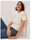 Elevated basics. Spun from super-soft cotton imbued with a comfortable stretch, this T-shirt showcases scalloped hanky sleeves with bold appliqué florals. A fun, feminine pick to style with everyday denim and ballet flats. Ivory