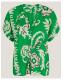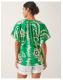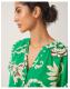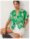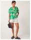 Off-duty outfitting. A vibrant addition to your holiday uniform, this shirt is cut with a collarless neckline and short sleeves in a breathable cotton fabric. Patterned with bold, artful floral and leaf motifs over the gorgeously green backdrop. Green