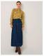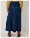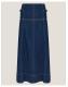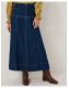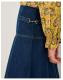 No regrets. Falling to midi length, this denim skirt flares into an A-line cut with tobacco stitching. Style it through summer with a cami and sandals, and autumn with knee high boots and a blouse. Finished with gold-tone equestrian buckles to sides. Blue