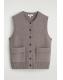 Rendered in a rich mole hue, this modern vest is crafted from merino wool that has been specially washed for a supremely soft hand feel. It features contrasting buttons, front pockets and a rounded neck that's ribbed for a more chunky look. Style it as a coord with the matching mini skirt.\u0026nbsp;Regular fitButton closureThis product contains Responsible Wool Standard TE-00047206 (RWS) wool fibre from farms certified to animal welfare and land-management requirements\u0026nbsp;Shell: 100% Merino wool. Excluding trims / Machine wash\u0026nbsp;Back length of size S is 55cm / Model wears a size S