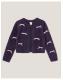 Hello, cutie. Like ribbon around a perfectly-wrapped present, this cardigan is the perfect finisher to all their looks. Stitched with fuzzy yarns in navy blue, it's embellished with all-over pretty pink bows. Blue