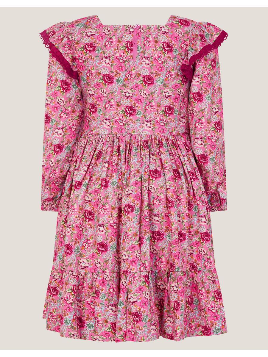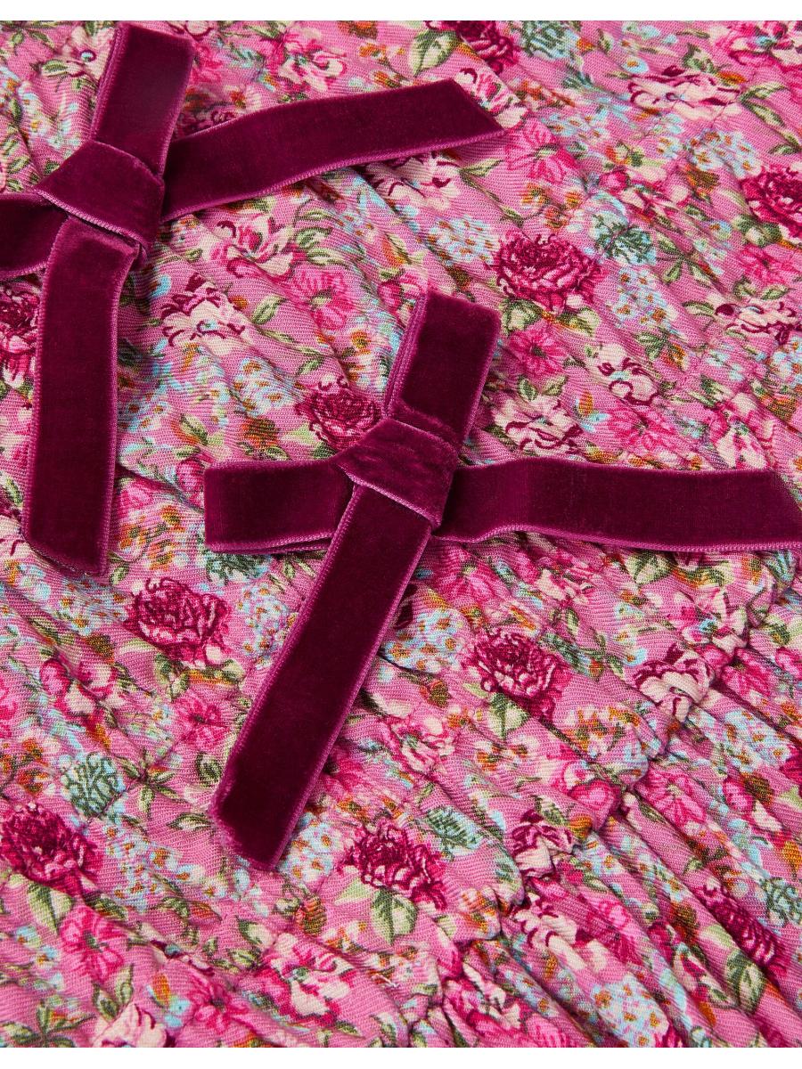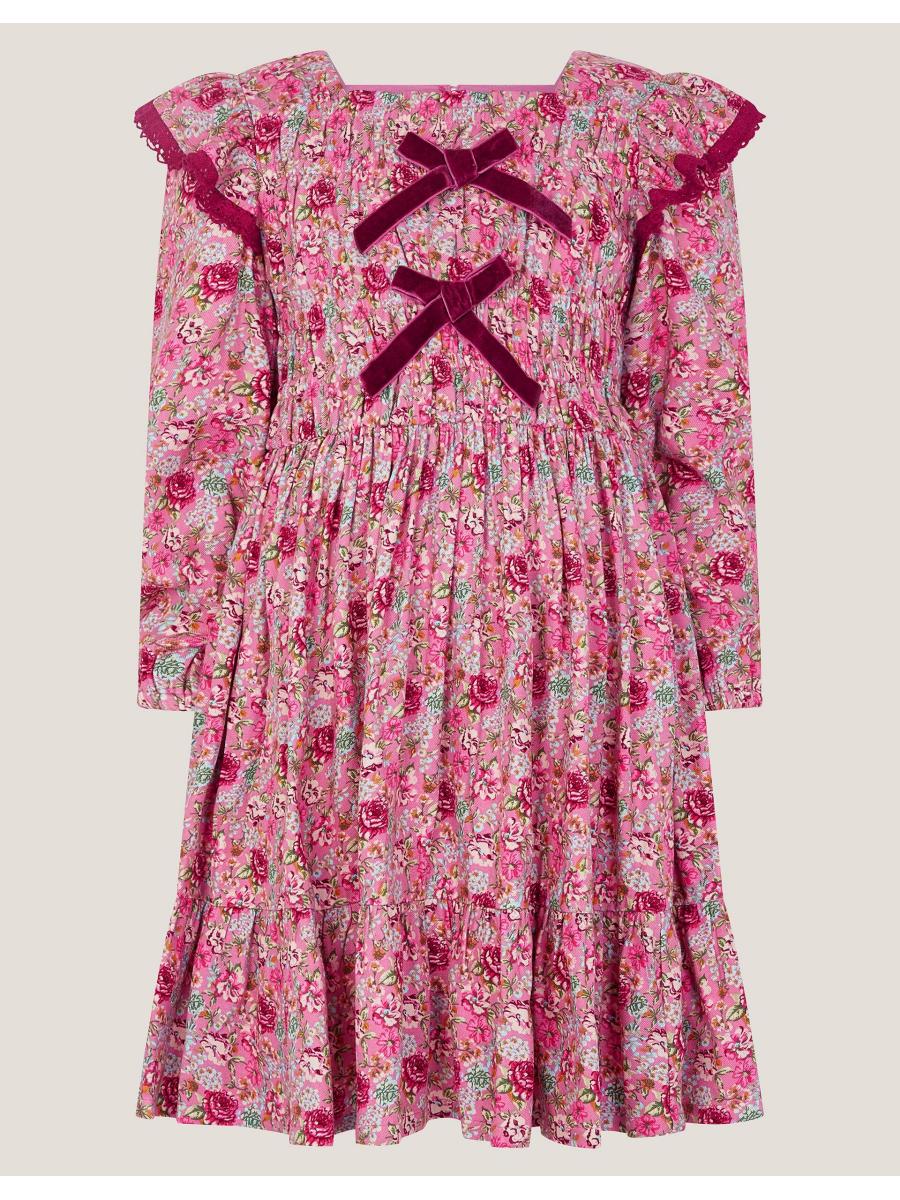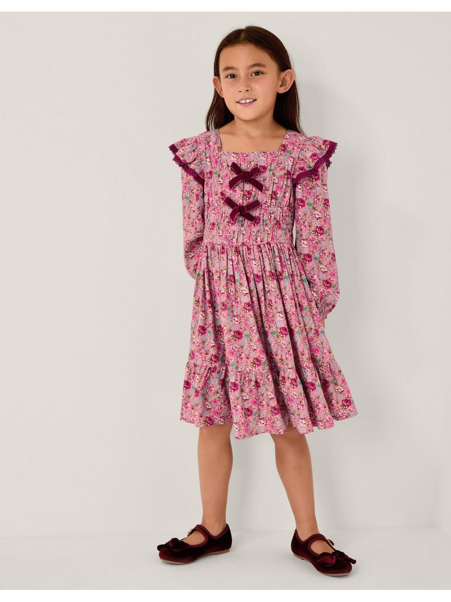 Pretend it's vintage. Cloaked in a forever-adorable floral pattern, this dress features full-length sleeves, frilly shoulders and velvet red bows decorating the bodice. Finished with a back button fastening. Pink