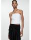 Tejido 100% de lino. Diseño drapeado. Diseño crop. Palabra de honor. Sin mangas. Panel nido de abeja. Cierre de cremallera invisible en la parte posterior