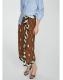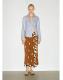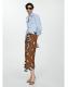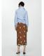Tejido fluido. Diseño midi. Diseño evasé. Tiro medio. Cierre oculto de cremallera en la parte posterior. Detalle de volante. Terminaciones en contraste
