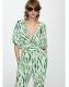 Tejido fluido. Diseño largo. Diseño recto. Cuello pico con solapa. Manga corta. Dos bolsillos laterales. Cinta en la cintura con cierre de lazo. Diseño estampado. La modelo mide 1,78 y lleva una talla S/36