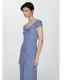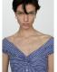 Tejido mezcla de algodón. Diseño largo. Estampado de rayas. Cuello barco. Hombros descubiertos. Manga corta. Detalles drapeados. Diseño entallado. Cierre delantero con botones