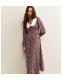 Brown Ditsy Floral Print Collared Crepe Midi Dress