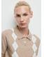 Este jersey presenta un tejido de punto fino con un diseño recto y de rombos. Incluye un cuello polo con cierre de botones y manga corta. Disponible en tallas Plus