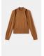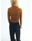 Confeccionado en tejido de punto fino, este diseño entallado presenta un estilo combinado con cuello halter y manga larga