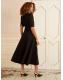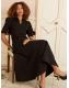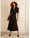 Love & Roses Black Crepe V-Neck PU Trim Midi Dress