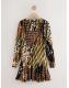 Brown Spliced Animal Print Long Sleeve A-Line Mini Dress