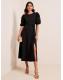 Friends Like These Black 3D Floral Print Sleeve Scuba Midi Dress