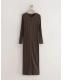 Chocolate Brown Ribbed Long Sleeve Button Down Midi Dress