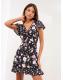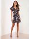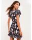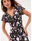 Lipsy Black Floral Mini V-Neck Ruched Dress