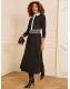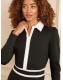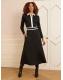Love & Roses Black Ponte Contrast Trim Zip Front Long Sleeve Midi Dress