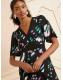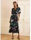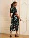 Love & Roses Black Abstract Jersey V-Neck Kimono Sleeve Midi Dress