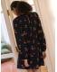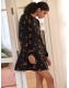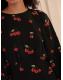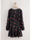 Black Cherry Print Mini Long Sleeve A-Line Seam Detail Dress