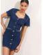 Lipsy Dark Wash Blue Short Sleeve Denim Mini Dress