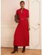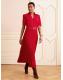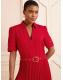 Love & Roses Scarlet Red Crepe Belted Trim Collared Midi Dress