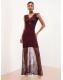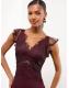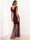 Lipsy Burgundy Red Cami Mesh Lace Mix Hem Maxi Dress