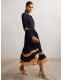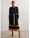 Reiss Navy/Camel Tori Colour-Block Pleated Midi Dress