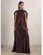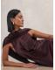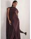 Reiss Burgundy Fae Satin Cape Maxi Dress