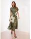 Lipsy Green Animal Fit And Flare Floral Short Sleeve Printed Chiffon Midi Dress