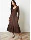 Threadbare Brown 2-in-1 Jersey Poplin Mix Scoop Neck Long Sleeve Dress