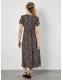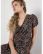 Apricot Brown Tie Front Animal Mono Print Dress
