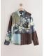 Blue Abstract Spliced Print Long Sleeve Button Down Shirt