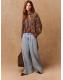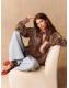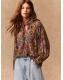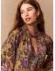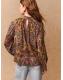 Olive Green Floral Long Sleeve Twist Neck Jersey Blouse