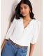 Friends Like These Cream 3/4 Sleeve Ruffle Button Blouse