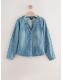 Mid Blue Denim V-Neck Barrel Sleeve Blouse