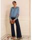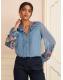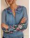 Love & Roses Blue Embroidered Frill Collar Long Sleeve Blouse