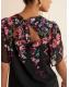 Love & Roses Black Floral Print Crew Neck Short Sleeve Blouse
