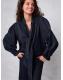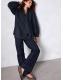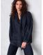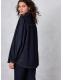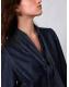 Rinse Blue Tie Neck Volume Sleeve Denim Blouse