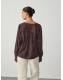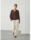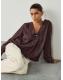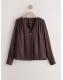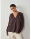 Chocolate Brown Check Satin Jacquard Long Sleeve V-Neck Blouse