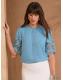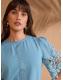 Love & Roses Blue Crew Neck Lace Short Sleeve Blouse