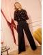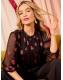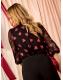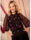 Love & Roses Black And Red Metallic Heart Crew Neck Long Sleeve Jacquared Blouse