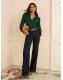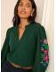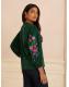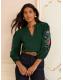 Love & Roses Forest Green Emroidered Sleeve Jersey Top
