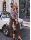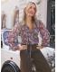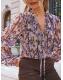 Love & Roses Purple Snake Long Ruffle Sleeve V-Neck Blouse