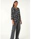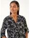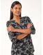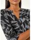 Roman Grey Leaf Print V-Neck Stretch Shirt