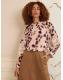 Love & Roses White Ecru Animal Crew Neck Long Sleeve Blouse